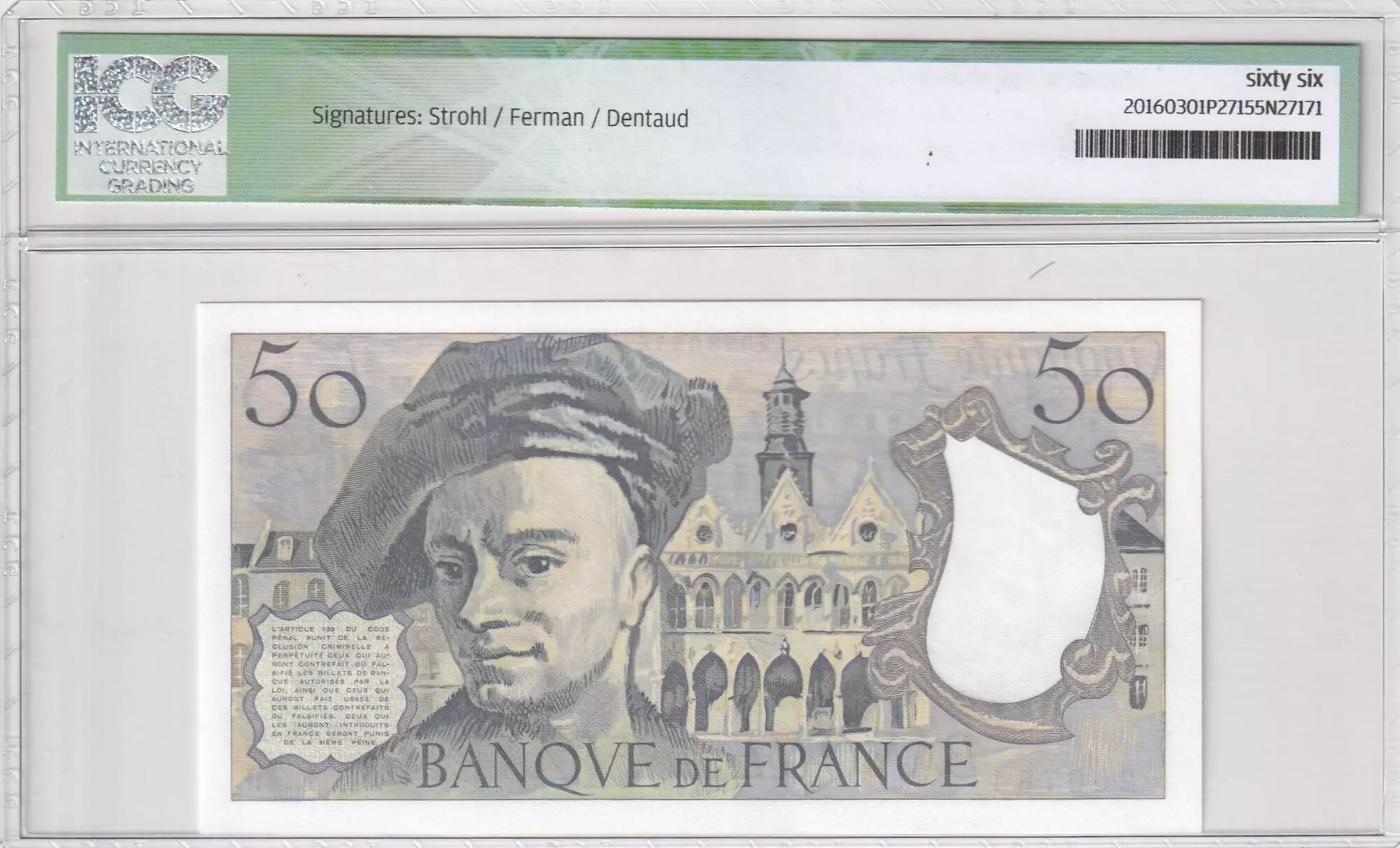 Accueil > Billets Français > Billets Banque de France > Billets 50 Francs > Quentin de la Tour type 1976 (1976-1992) > France 50 Francs - Quentin de la Tour - 1987 - Série K.49 - ICG 66 Choice UNC