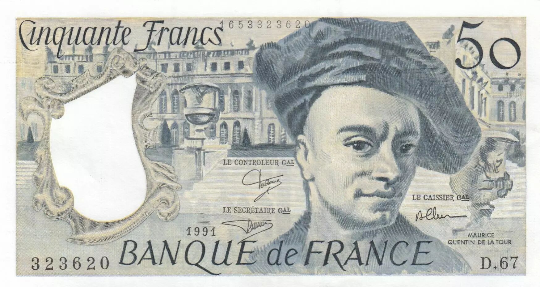 Banknote France 50 Francs - Quentin de la Tour - 1991 - Serial D.67