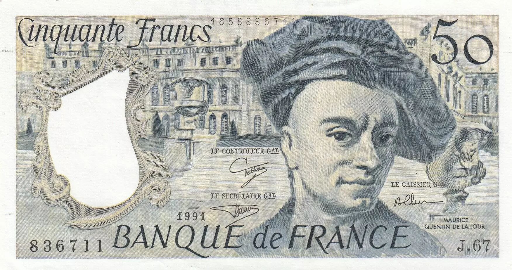 Accueil > Archivage > archivage-Billets Français > France 50 Francs - Quentin de la Tour - 1991 - Série J.67