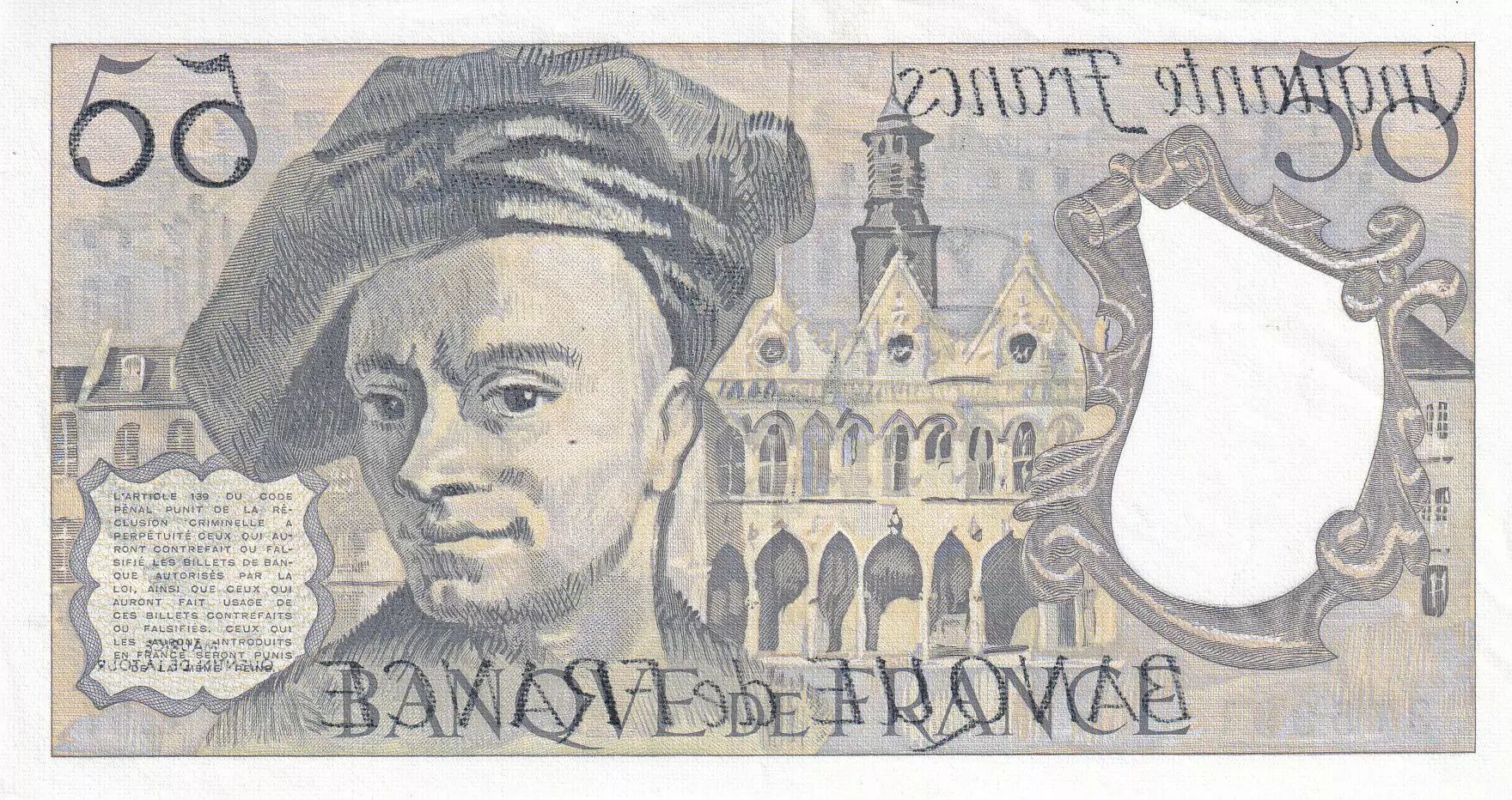 Facial value in letters and numbers printed on back like the mention "BANQUE DE FRANCE"