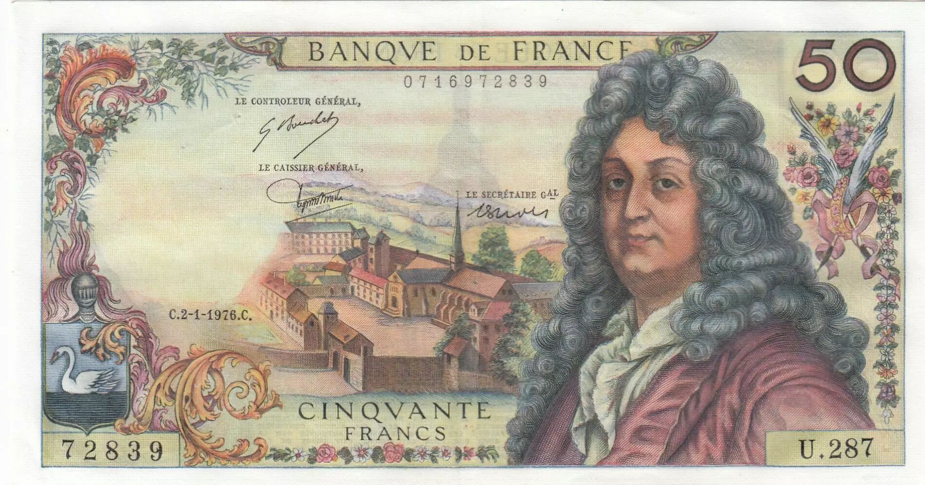 Billet France 50 Francs - Racine - 02-01-1976 - Série U.287