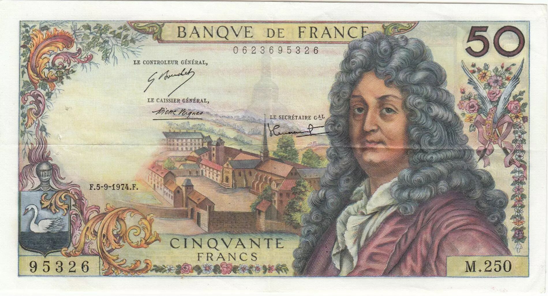 Accueil > Archivage > archivage-Archivage > France 50 Francs Racine - 05-09-1974 Série M.250 - TTB+