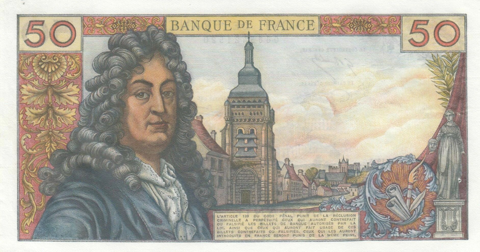 Le billet de 50 Francs Racine, daté du 06-03-1975 et appartenant à la série E.267, est un billet de banque émis en France.