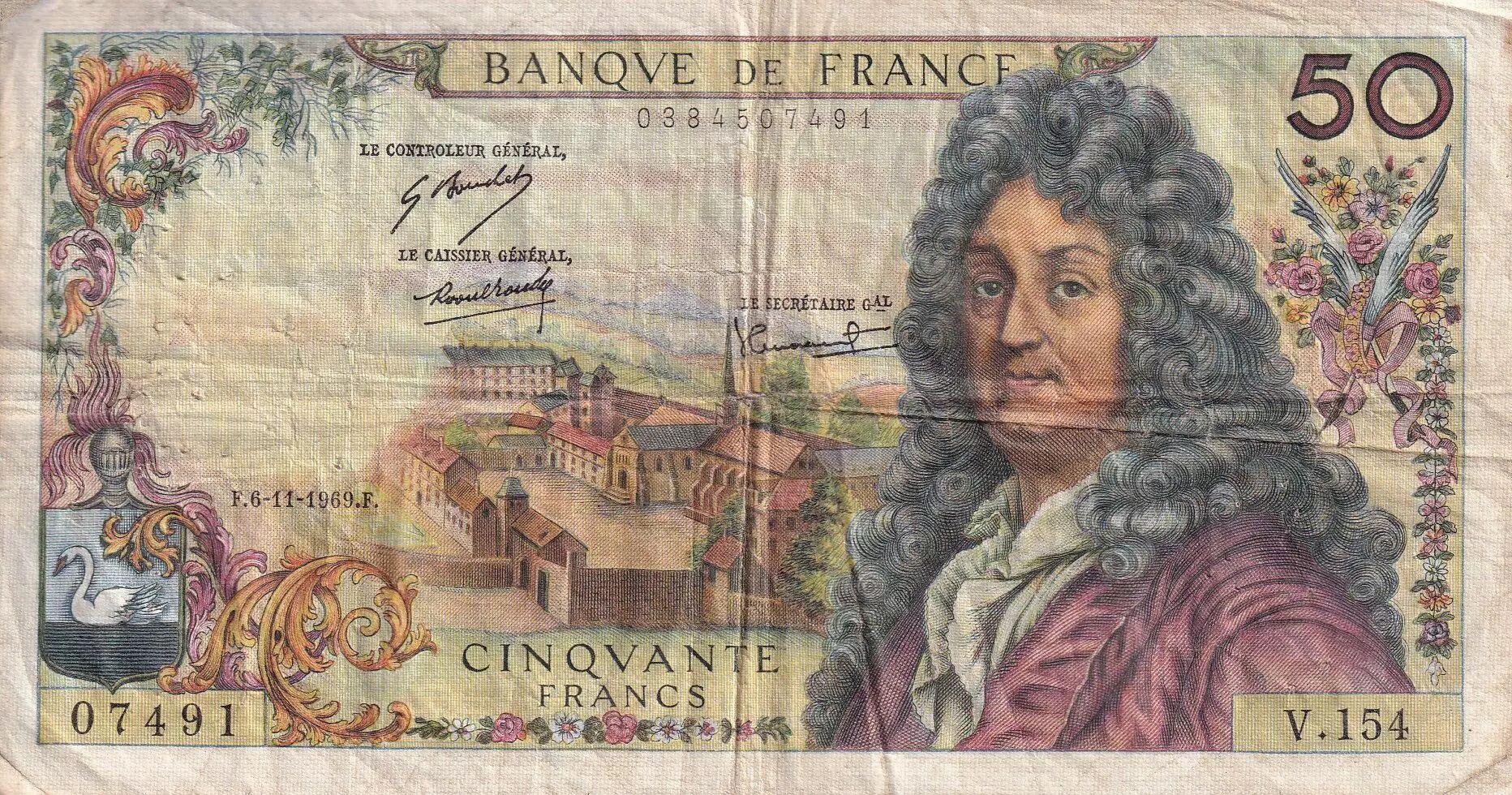 Home > > France 50 Francs - Racine - 06-11-1969 - Serial V.154 - P.148