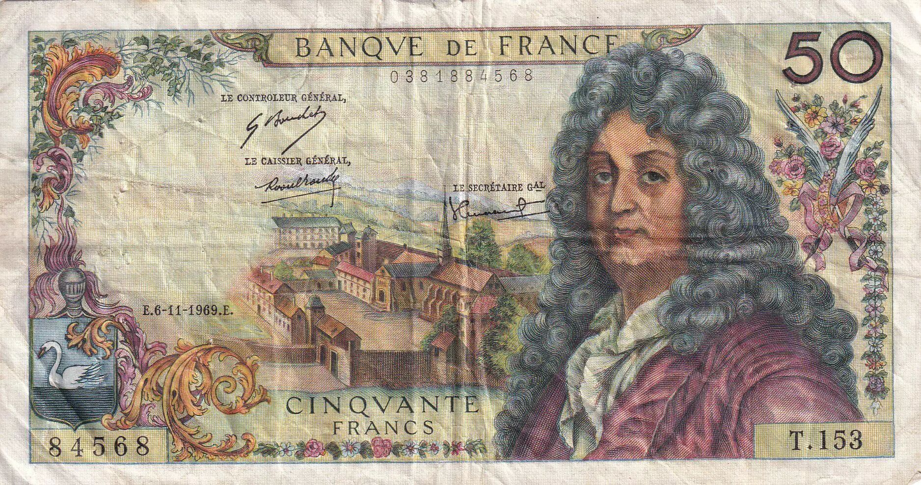 Billet France 50 Francs - Racine - 06-11-1969 - Série T.153 - F.64.15
