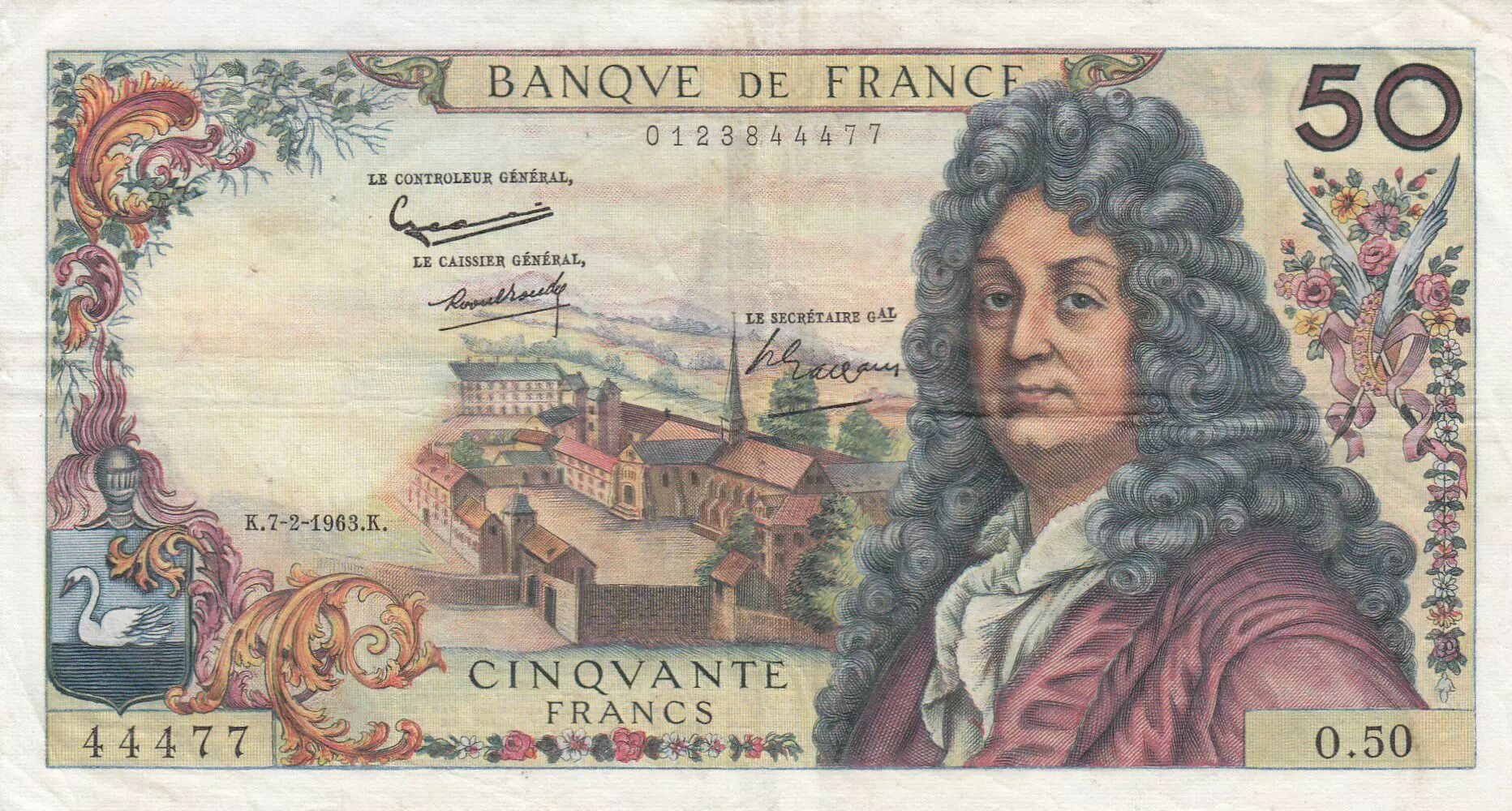 Home > > France 50 Francs Racine - 07-02-1963 Serial O.50 - VF