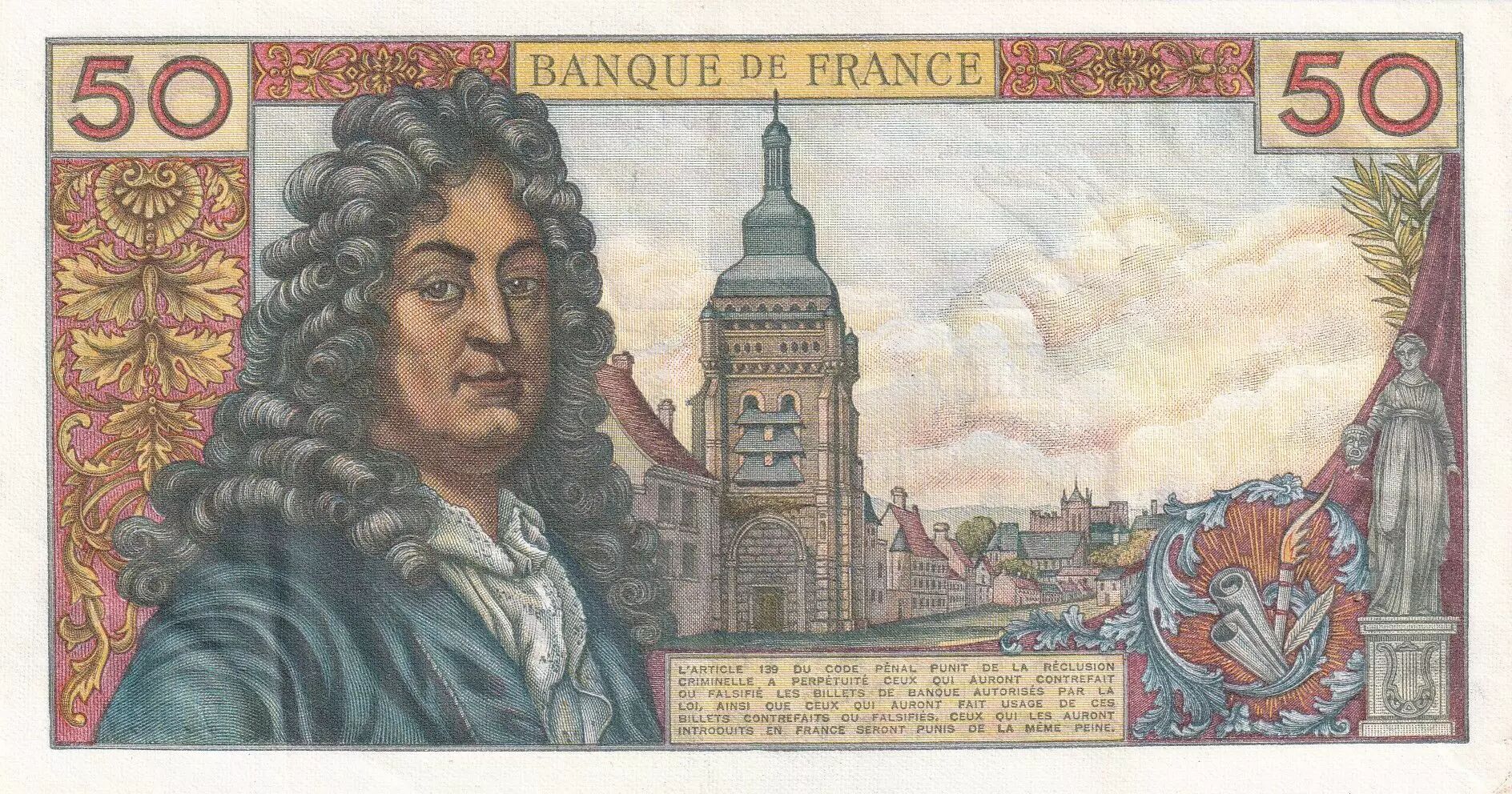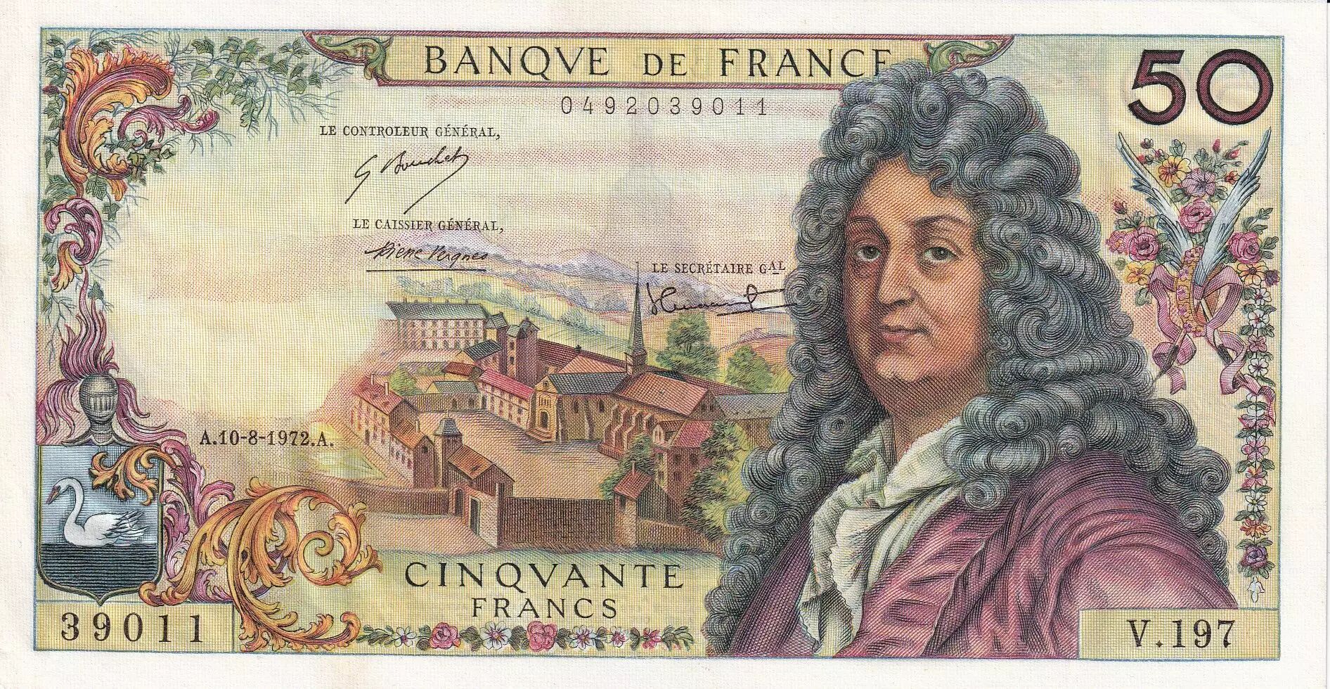 Banknote France 50 Francs - Racine - 10-08-1972 - Serial V.197