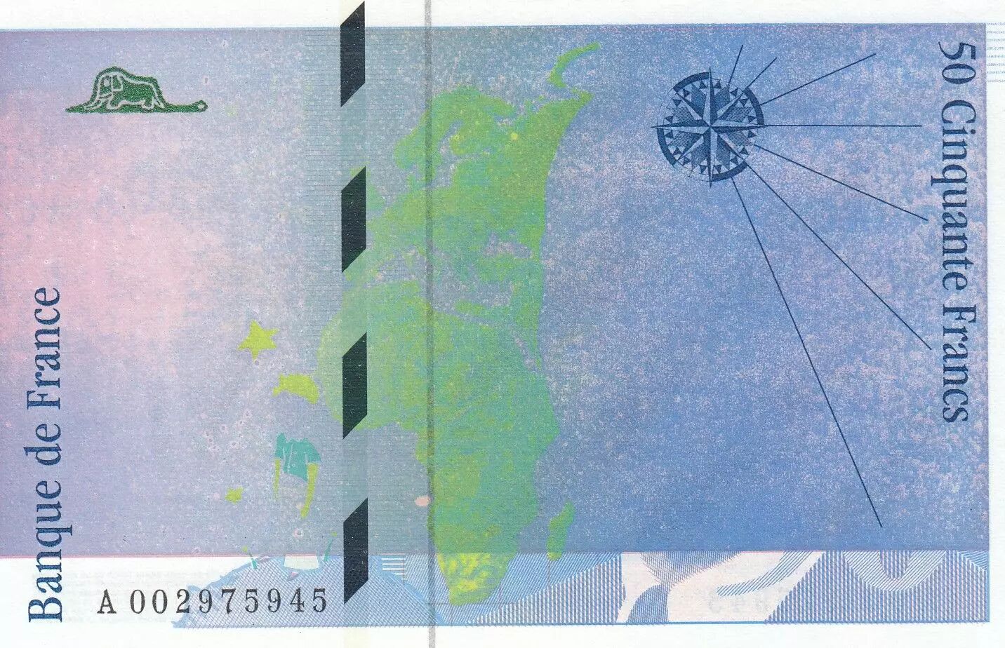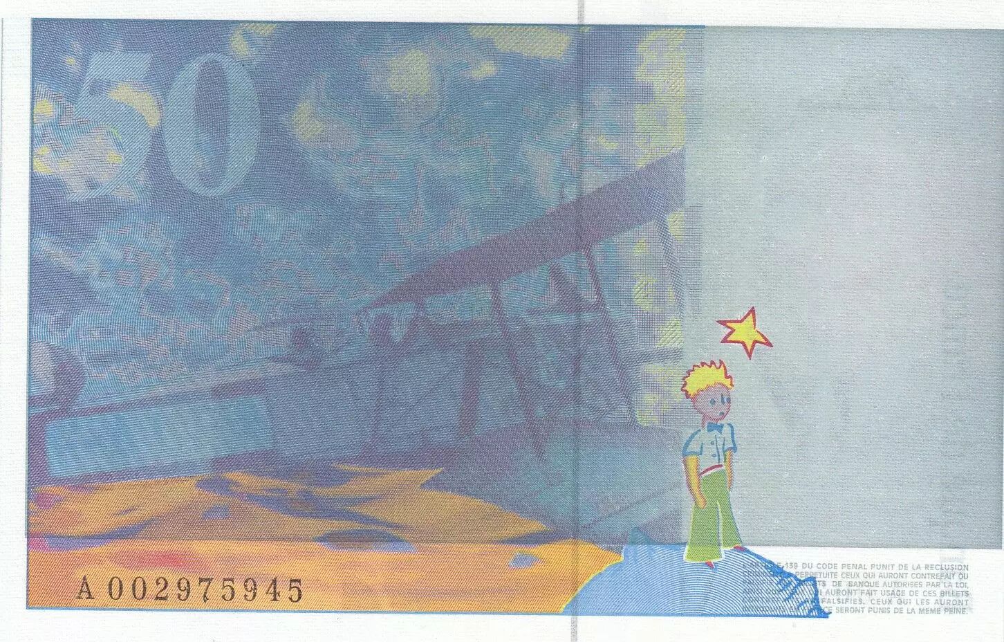 Accueil > Archivage > archivage-Billets Français > France 50 Francs - Saint-Exupéry - 1992 - Fauté impression bleue - Série A.002