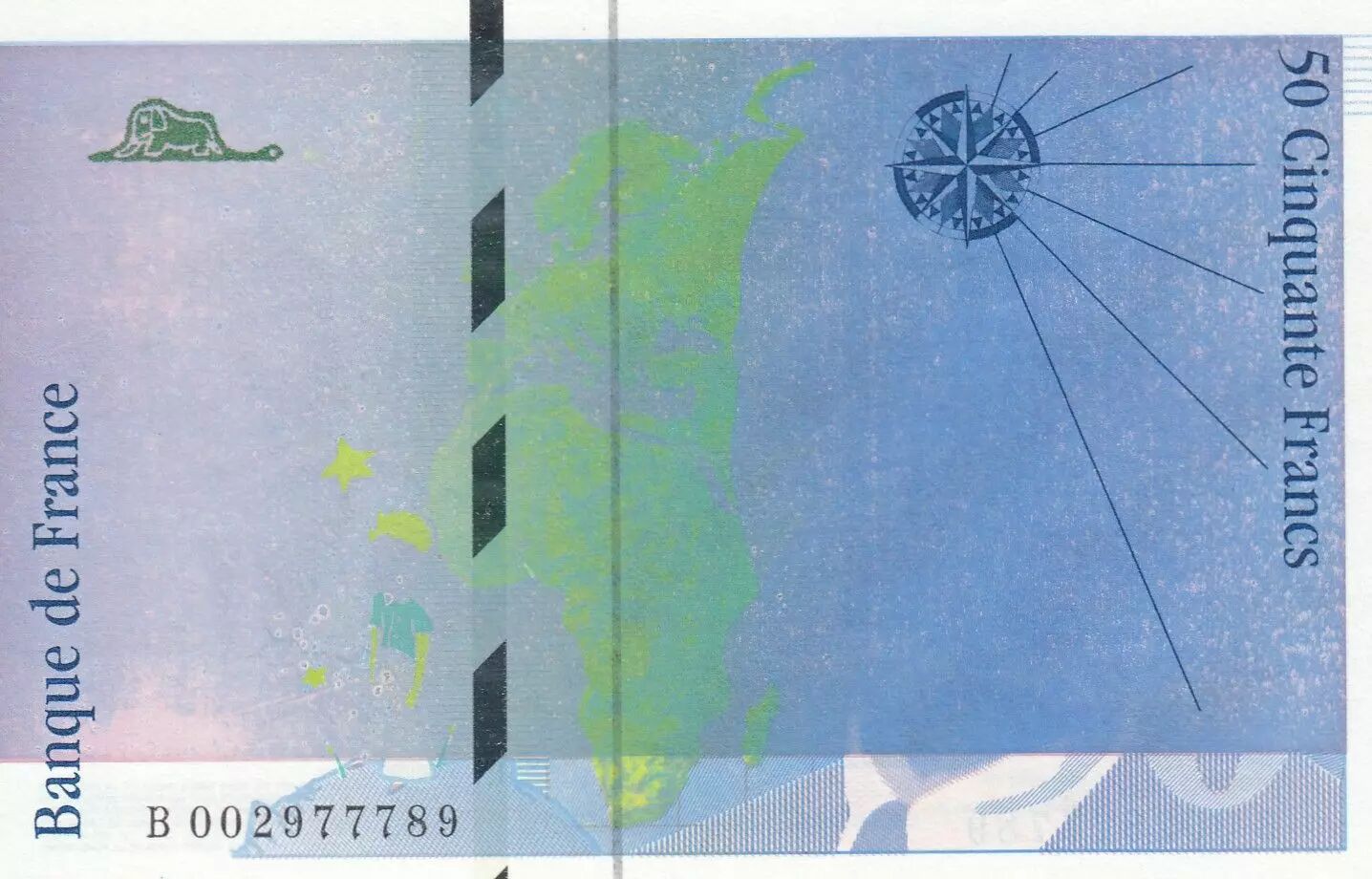Accueil > Billets Français > Billets Banque de France > Billets 50 Francs > Saint-Exupéry type 1992 (1992-1999) > France 50 Francs - Saint-Exupéry - 1992 - Fauté impression bleue - Série B.002