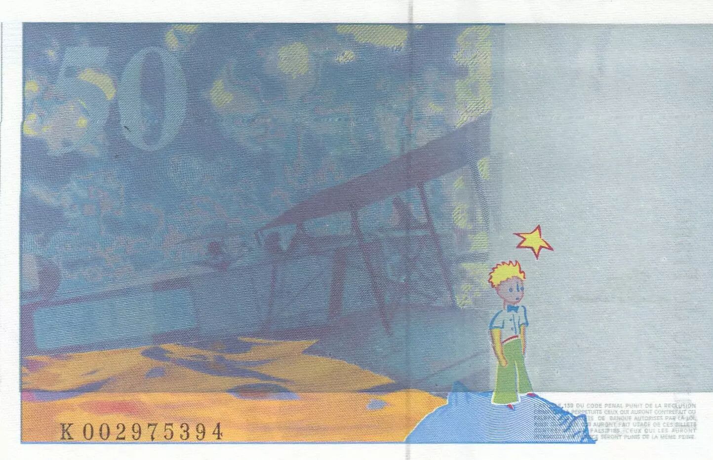 Accueil > Archivage > archivage-Billets Français > France 50 Francs - Saint-Exupéry - 1992 - Fauté impression bleue - Série K.002
