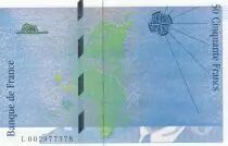 Billet France 50 Francs, Saint-Exupéry - 1992 - Fauté impression bleue - Série L.002977578