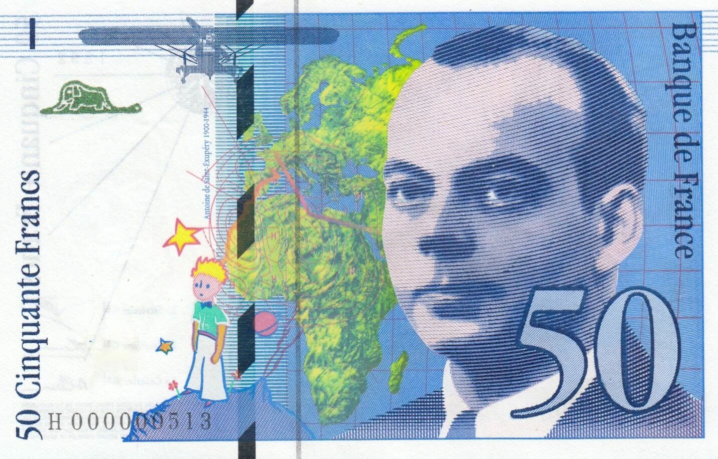 Le billet de 50 francs Saint-Exupéry, émis en 1992, est un symbole de la numismatique française. Il s'agit d'un billet de banque commémorant l'écrivain et aviateur Antoine de Saint-Exupéry, célèbre pour son ?uvre "Le Petit Prince".