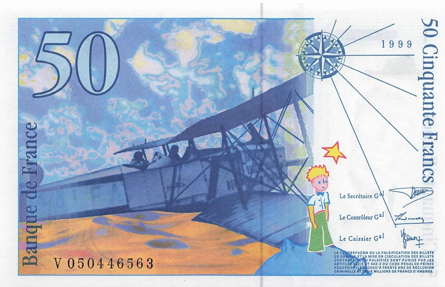Billet France 50 Francs - Saint-Exupery - 1999 - Série V.050