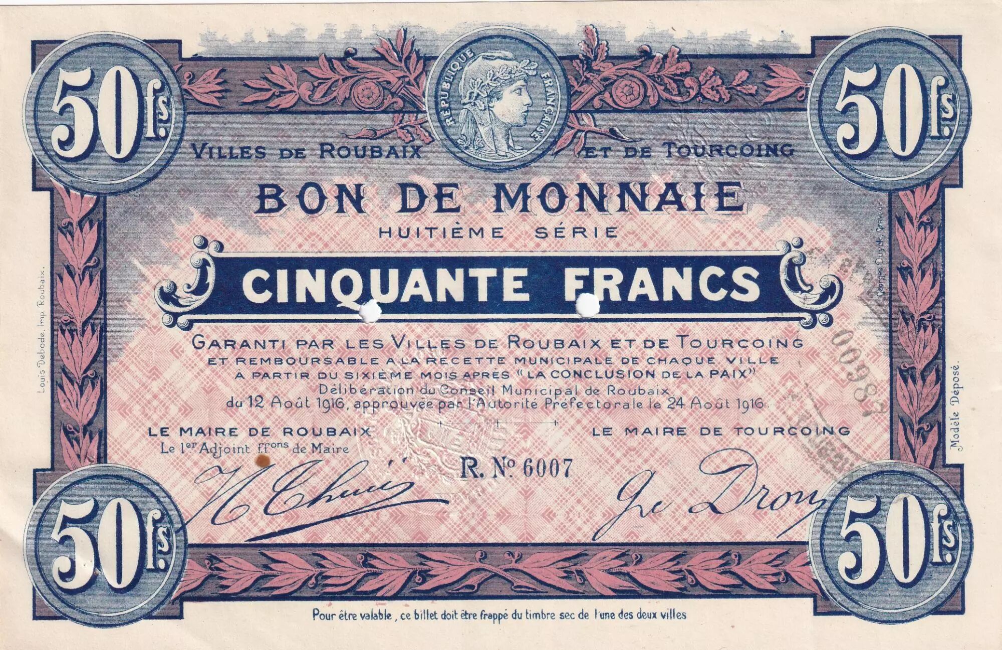 Il s'agit d'une émission de nécessité commune aux villes de Roubaix et Tourcoing, situées dans le département du Nord. Ces émissions ont été produites durant la période de 1914 à 1918.