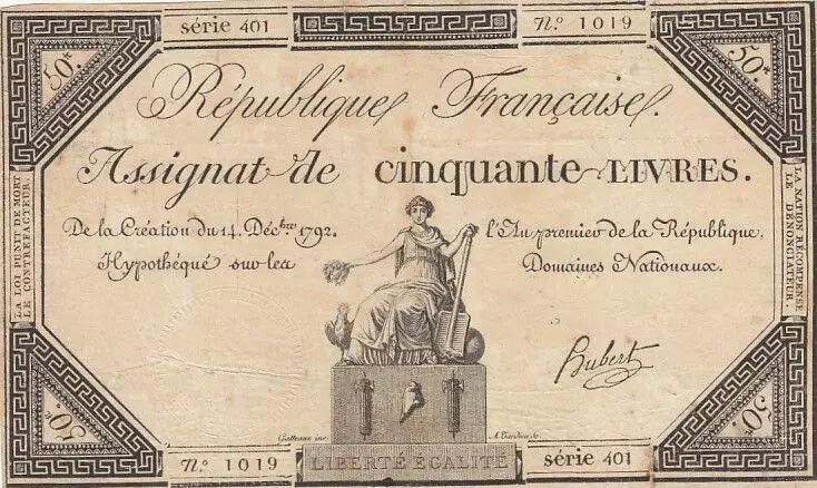 Billet France 50 Livres - 14 Décembre 1792 - République Française - Sign. Gaillet - Série 4570