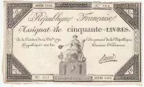 Billet France 50 Livres France assise - 14-12-1792 - Sign. Barraud - TTB