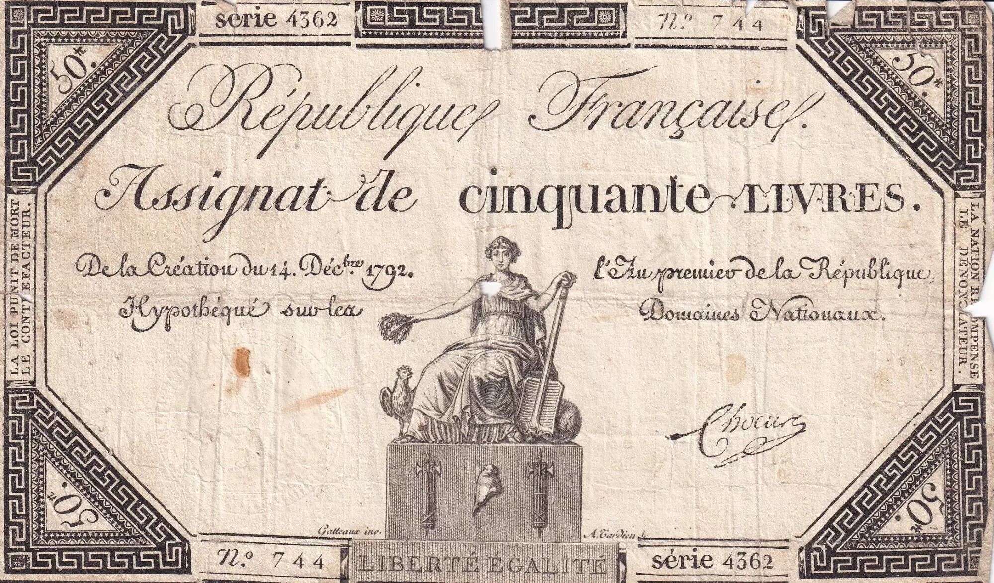 Billet France 50 Livres - France assise - 14-12-1792 - Sign. Choeur - Série 4362 - L.164