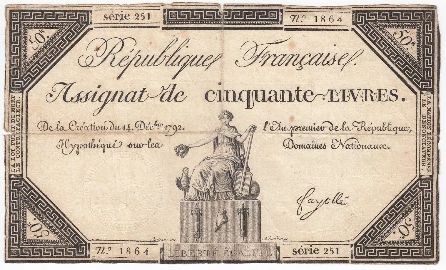 Billet France 50 Livres France assise - 14-12-1792 - Sign. Fayolle - TB