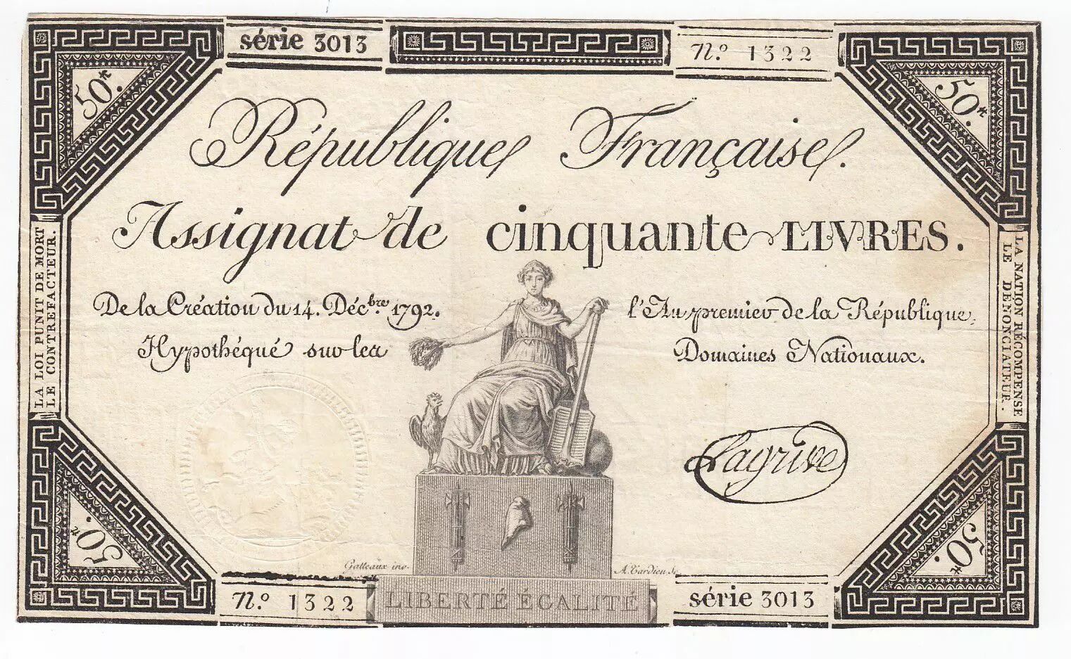 Accueil > Archivage > France 50 Livres France assise - 14-12-1792 - Sign. Lagrive - TTB
