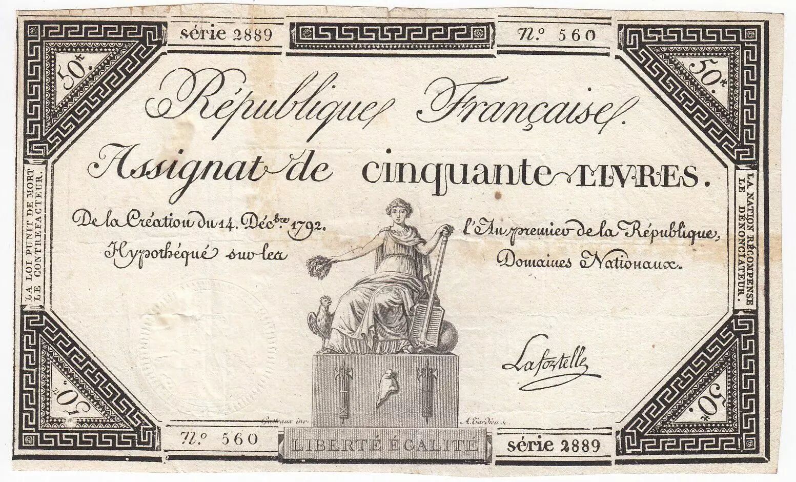 Banknote France 50 Livres France seated - 14-12-1792 - Sign. Lafortelle - VF