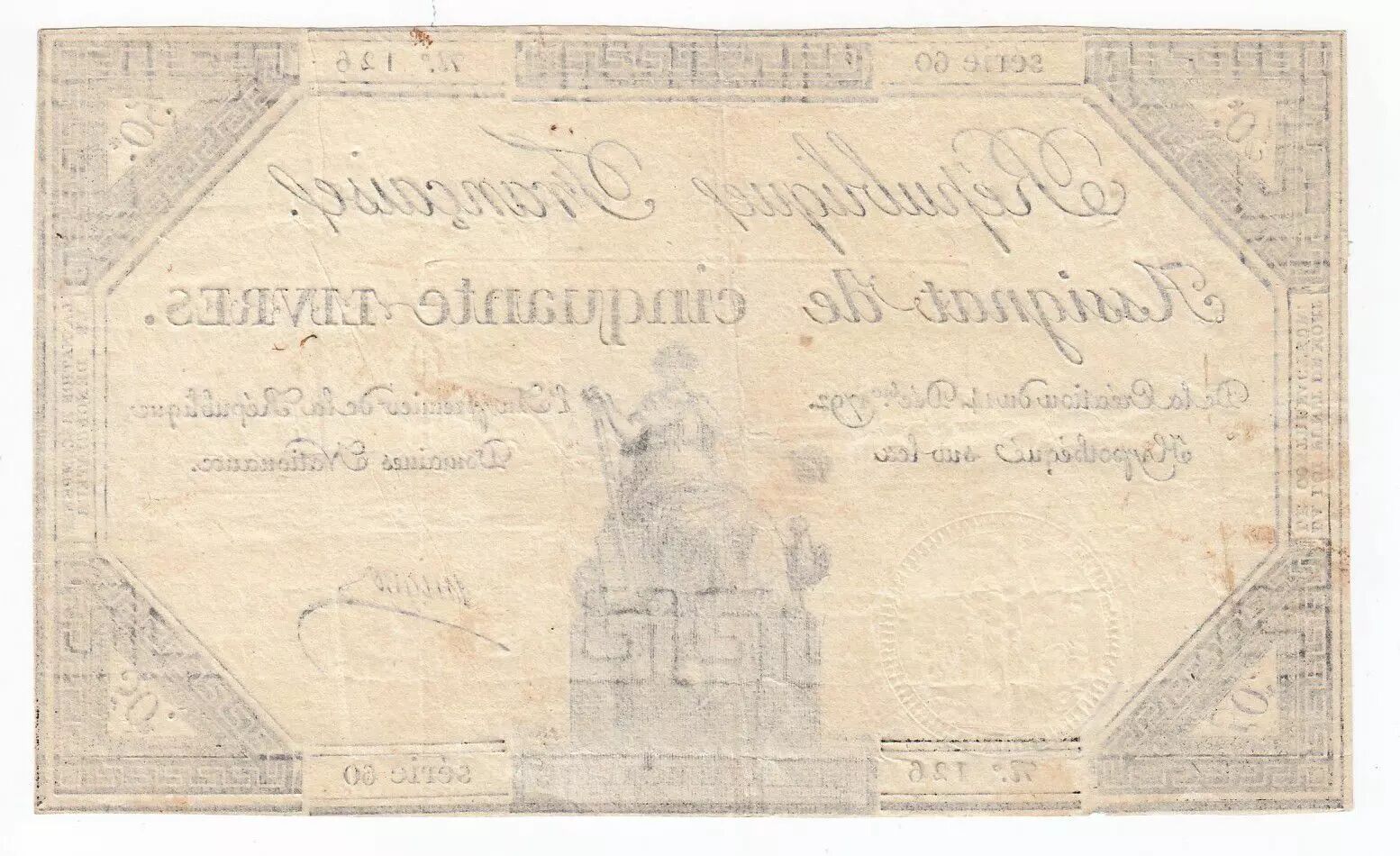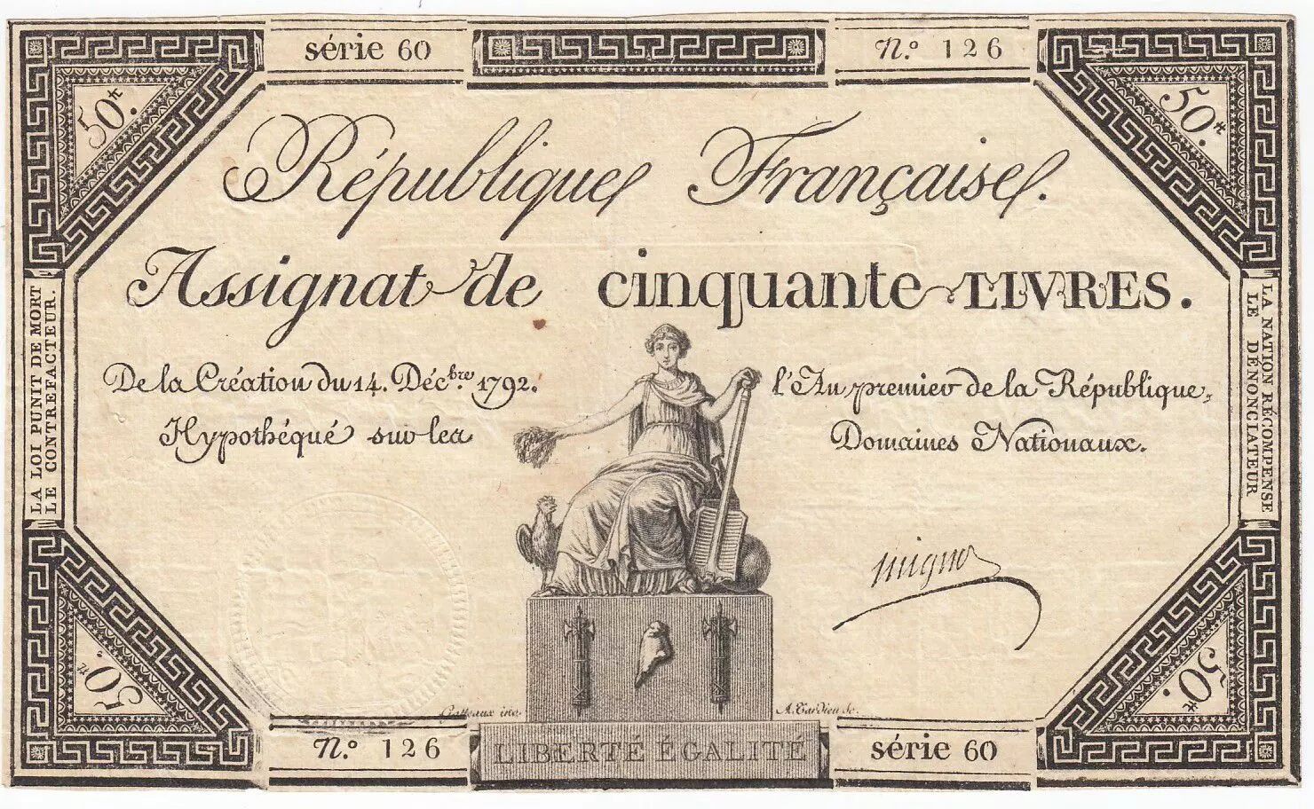 Banknote France 50 Livres France seated - 14-12-1792 - Sign. Migno - VF