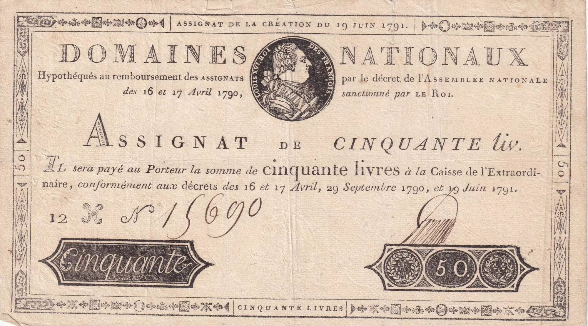 Banknote France 50 Livres Louis XVI - 19-06-1791 - Sign.. Darnaud