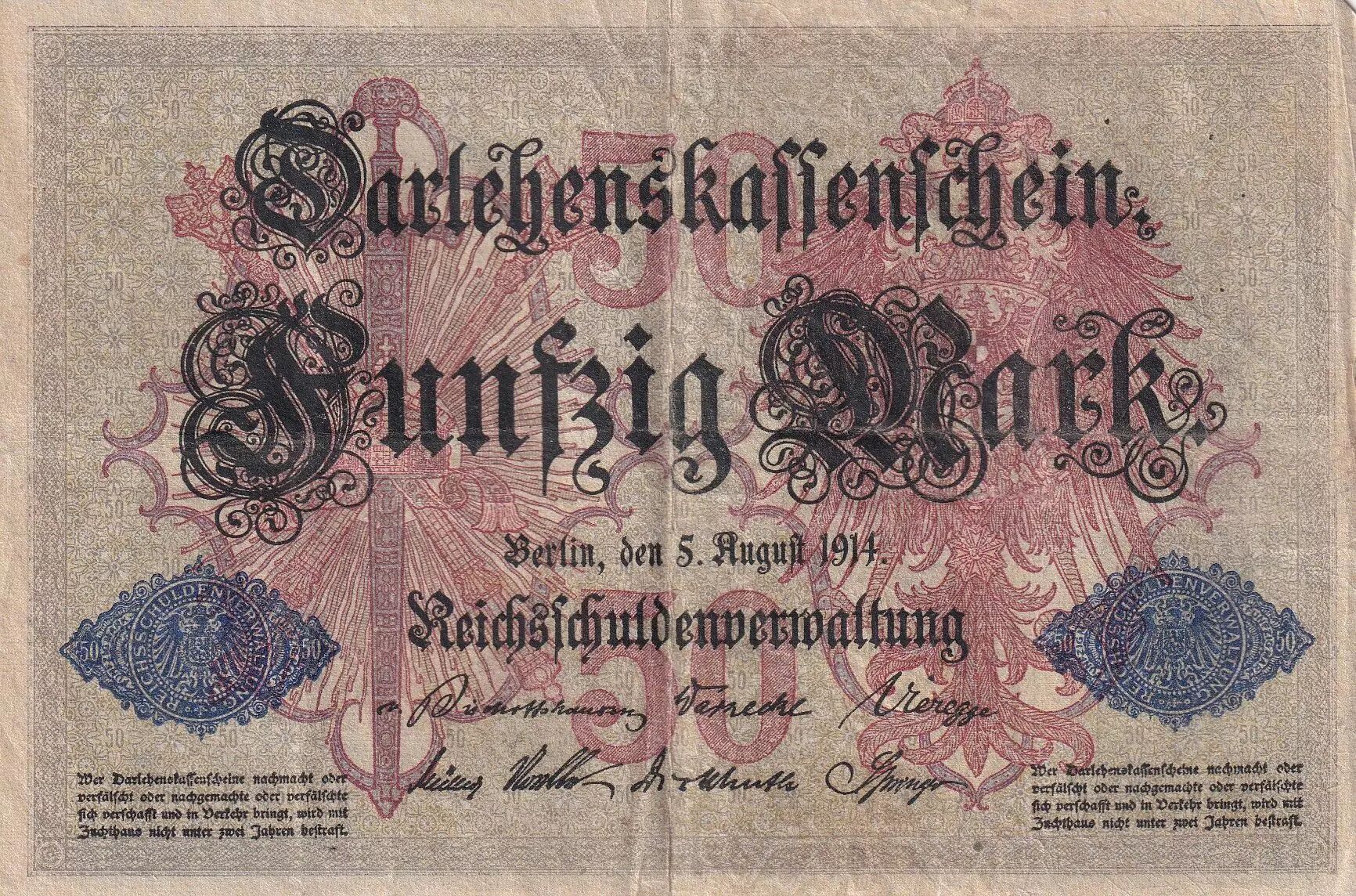 Home > > France 50 Mark - Germania - 1914 - Varieties serials - F to VF - P.49b
