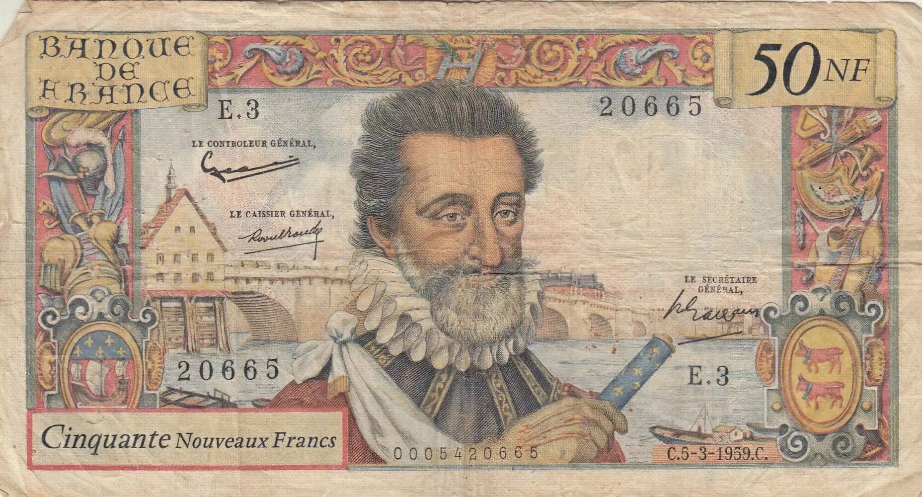 Banknote France 50 NF - Henri IV - 05-03-1959 - Serial E.3