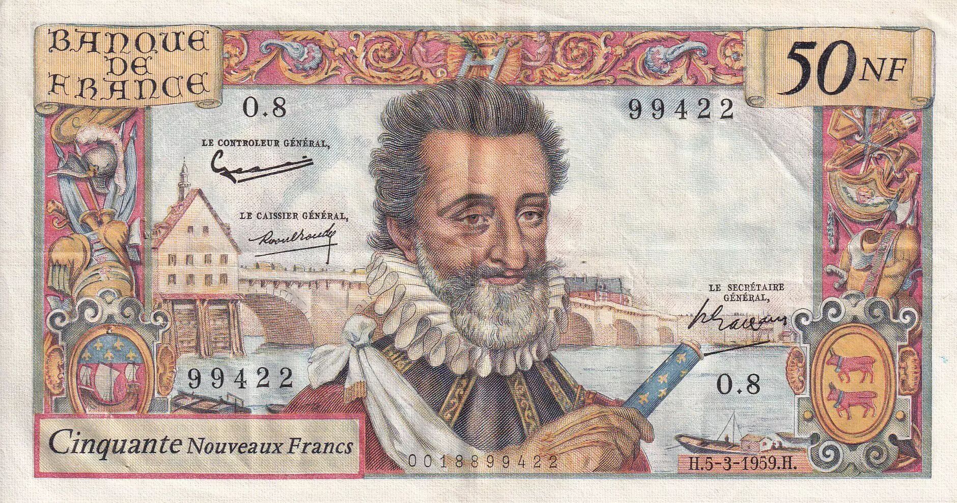 Banknote France 50 NF - Henri IV - 05-03-1959 - Serial O.8 - VF to XF - P.143