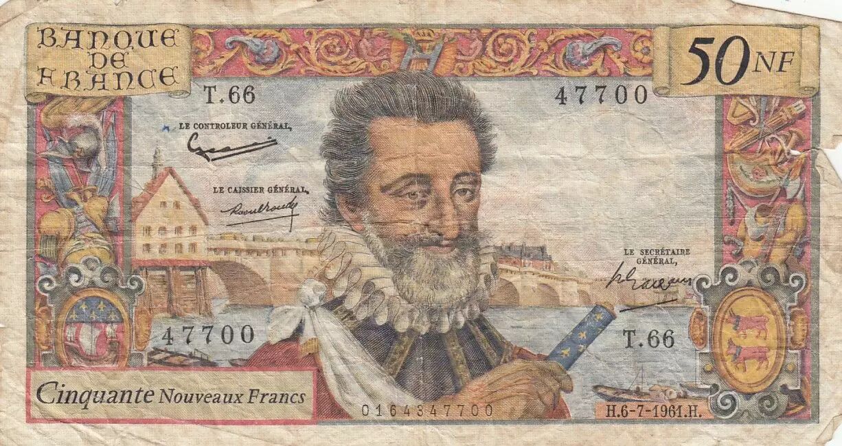 Banknote France 50 NF Henri IV - 06-07-1961 - Serial T.66