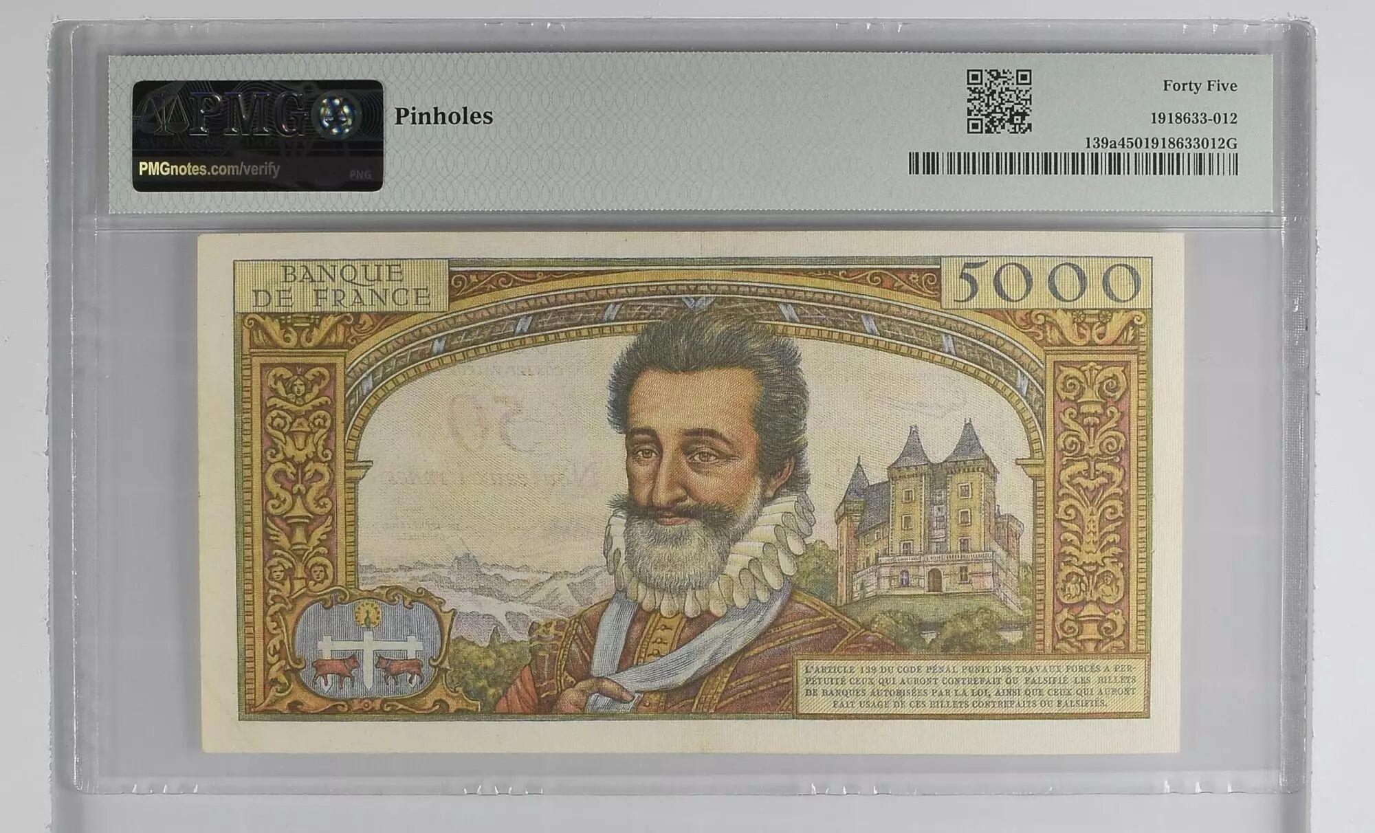 Home > > France 50 NF on 5000 Francs - Henri IV - 30-10-1958 - Serial K.93 - PMG 45