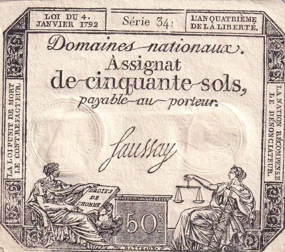 Billet France 50 Sols Liberté et Justice (04-01-1792) - Série 341