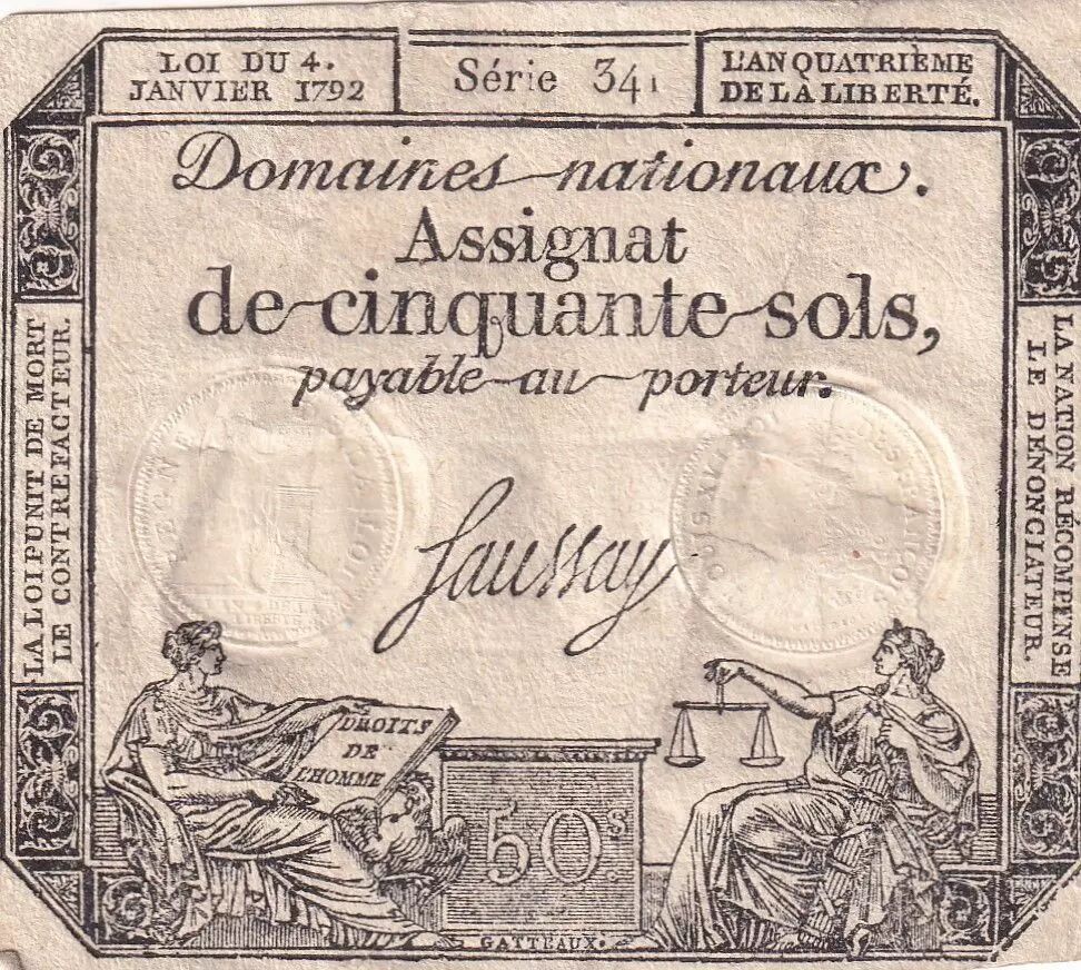 Billet France 50 Sols Liberté et Justice (04-01-1792) - Série 341