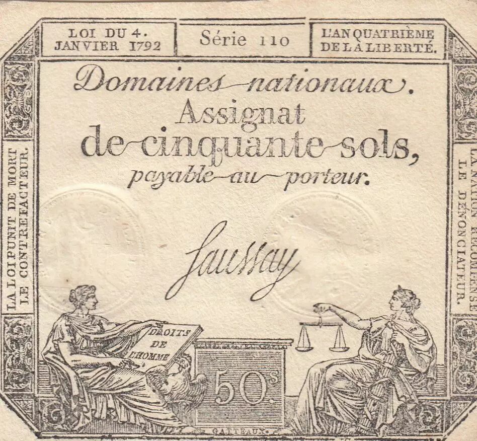 Billet France 50 Sols - Liberté et Justice - 04-01-1792 - Sign. Saussay - Série 110