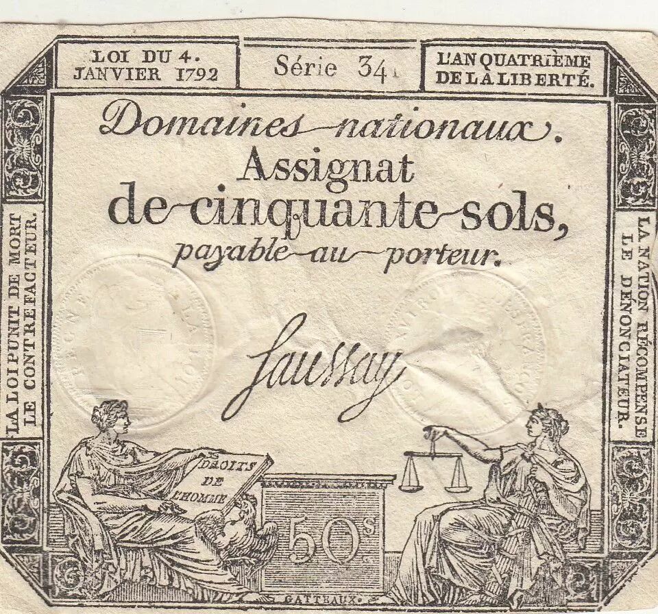 Billet France 50 Sols - Liberté et Justice - 04-01-1792 - Sign. Saussay - Série 341