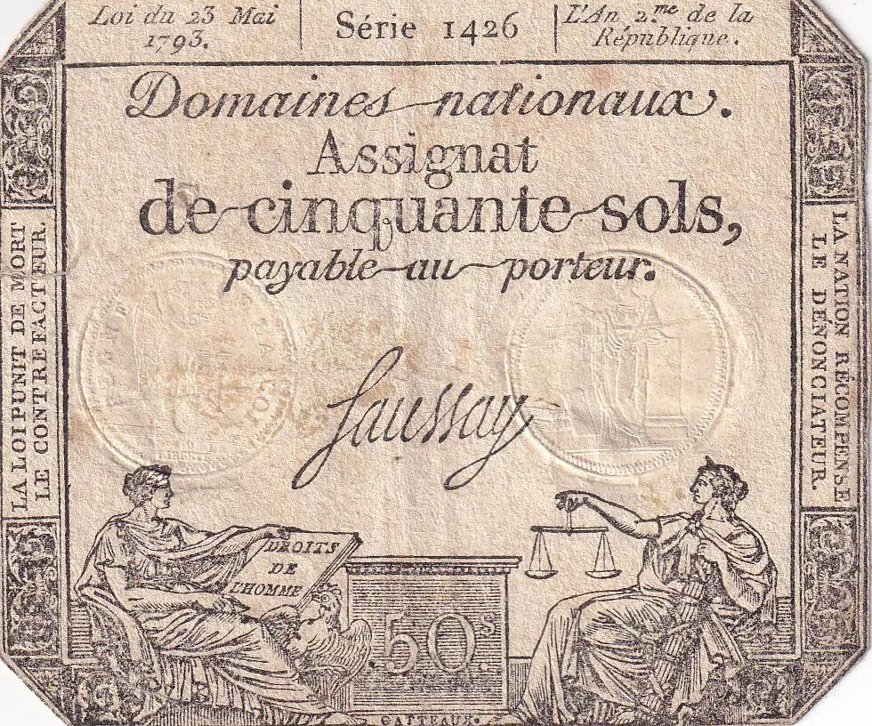 Billet France 50 Sols - Liberté et Justice (23-05-1793) - Sign. Saussay - Série 1426 - L.167.1