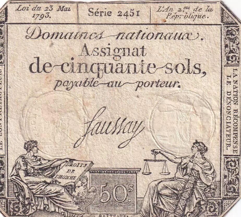 Billet France 50 Sols - Liberté et Justice (23-05-1793) - Sign. Saussay - Série 2451 - L.167.1