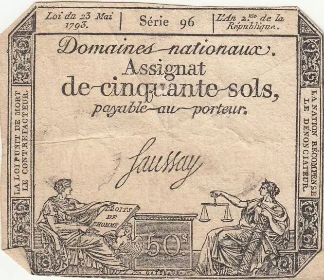 Billet France 50 Sols Liberté et Justice (23-05-1793) - Sign. Saussay - Série 96
