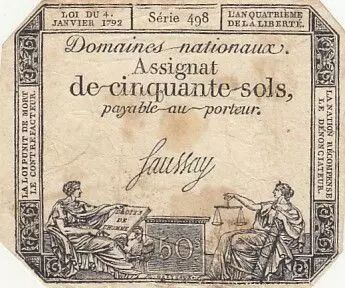 Banknote France 50 Sols Liberty and Justice (04-01-1792) - French Revolution - Serial 498