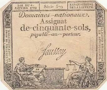 Banknote France 50 Sols Liberty and Justice (04-01-1792) - French Revolution - Serial 579
