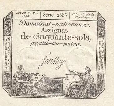Banknote France 50 Sols Liberty and Justice (23-05-1793) - French Revolution - Serial 2686