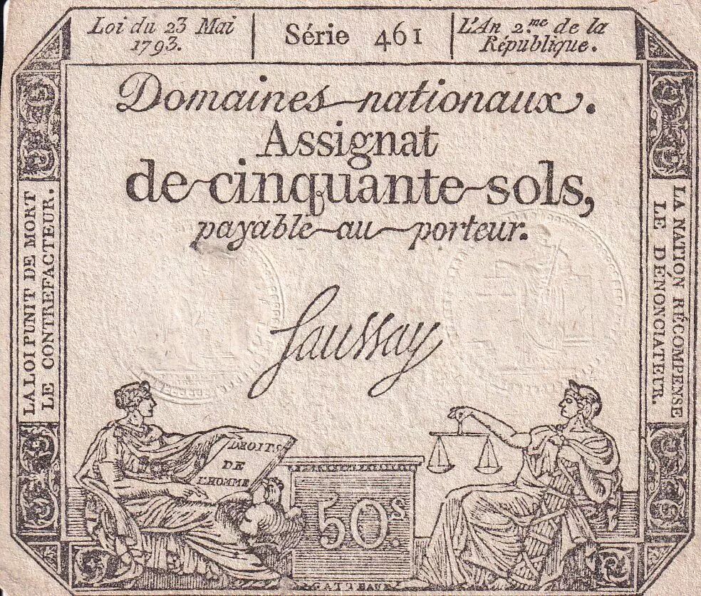 Banknote France 50 Sols - Liberty and Justice (23-05-1793) - Sign. Saussay