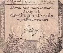 Banknote France 50 Sols - Liberty and Justice (23-05-1793) - VF - Sign. Saussay