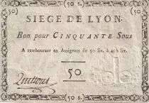 Home > French Banknotes > Assignats > France 50 Sous Siège de Lyon - 19-09-1793