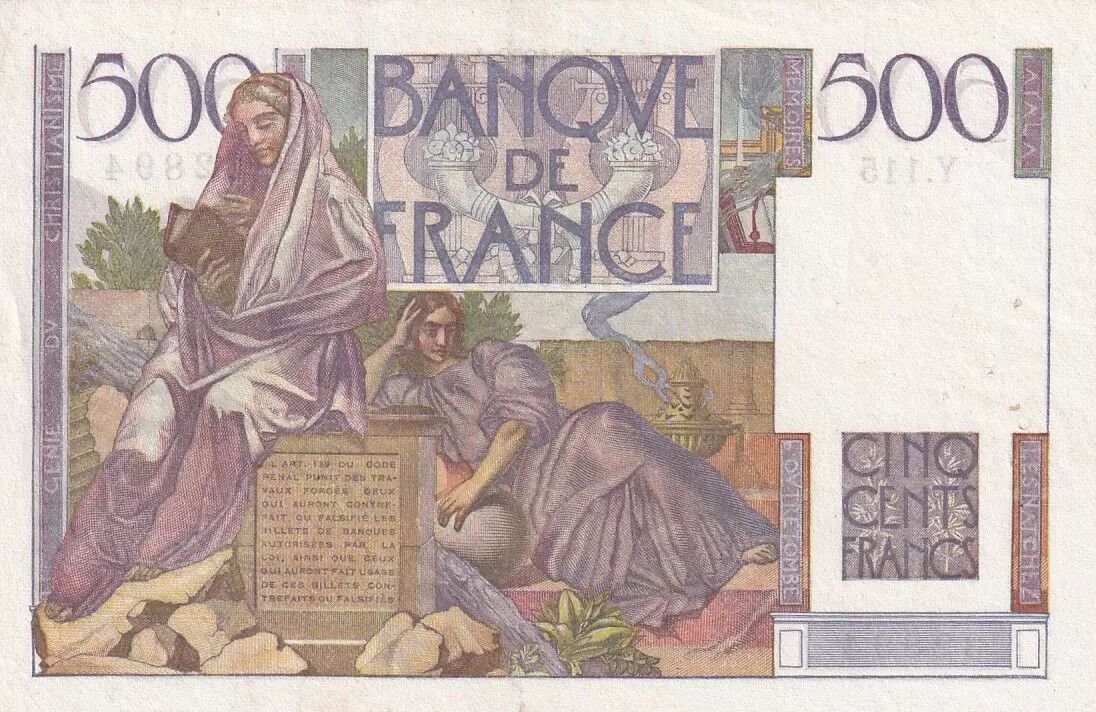 Accueil > Archivage > archivage-Billets Français > France 500 Francs - Chateaubriand - 04-09-1952 - Série Y.115 - TTB