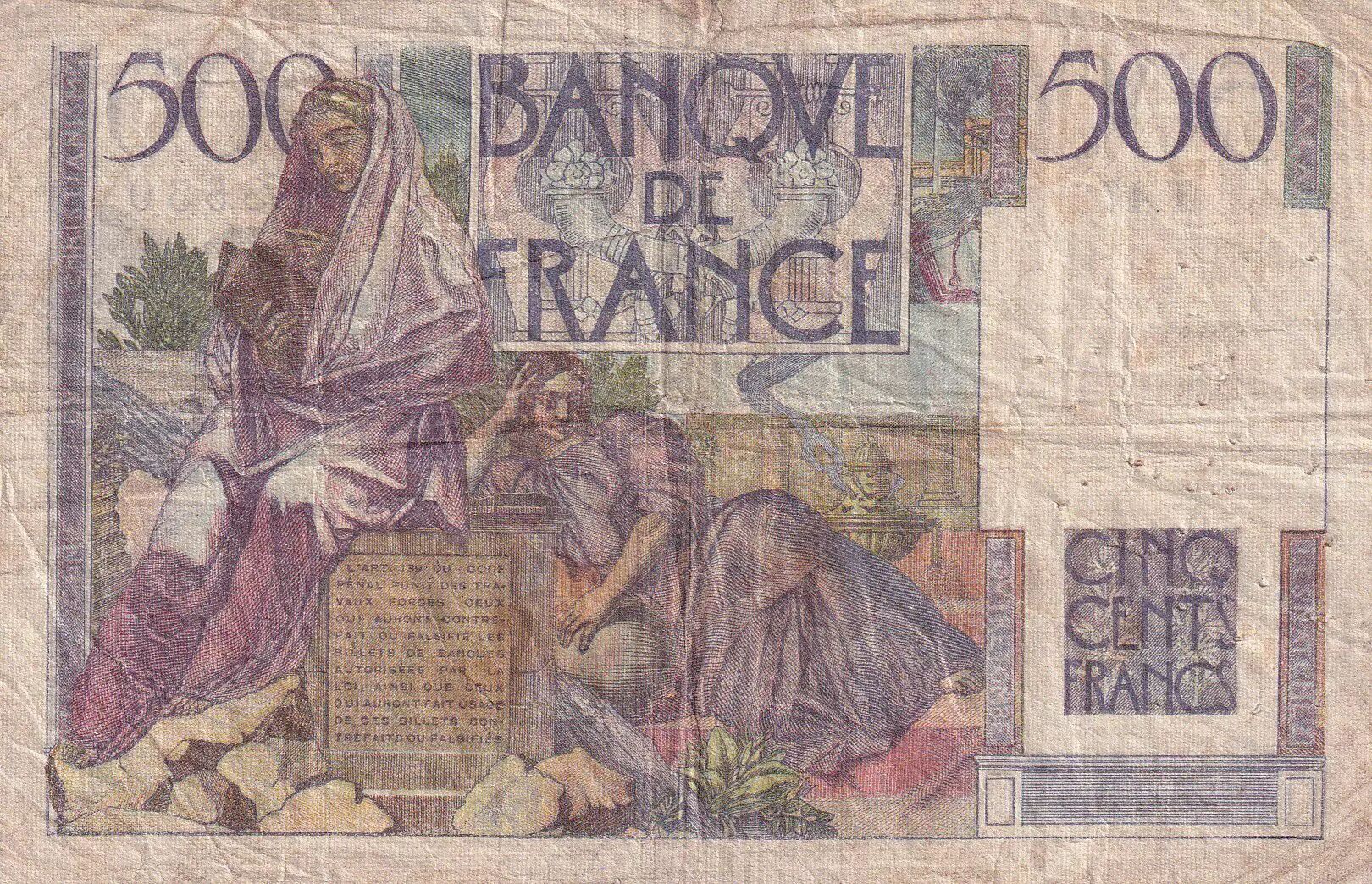 Banknote France 500 Francs - Chateaubriand - 07-11-1945 - Serial T.47 - F.34.03