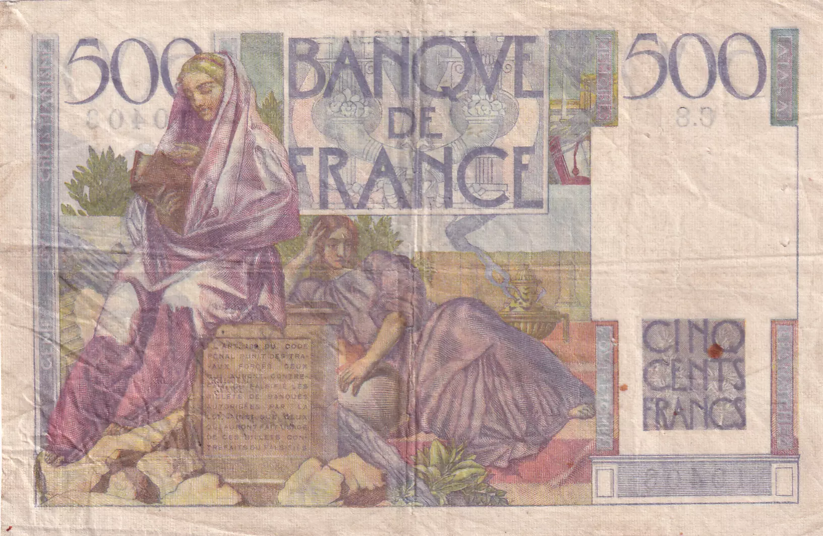Banknote France 500 Francs Chateaubriand 19-07-1945- Serial C.8