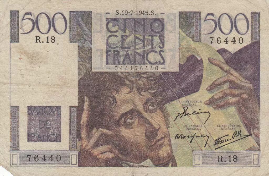 Home > > France 500 Francs Chateaubriand 19-07-1945 - Serial R.18