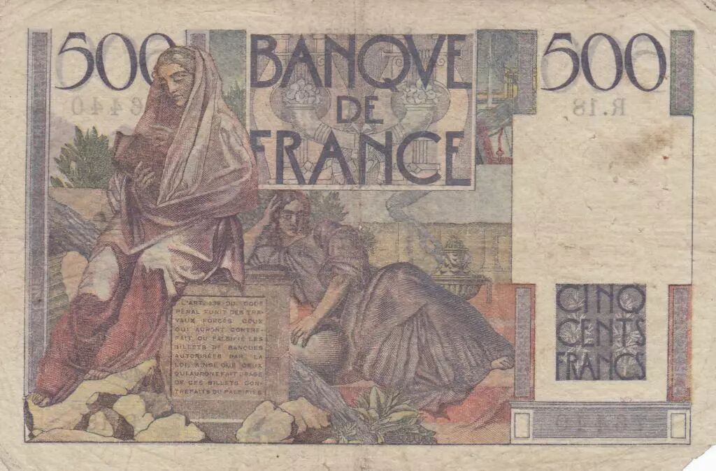 Banknote France 500 Francs Chateaubriand 19-07-1945 - Serial R.18