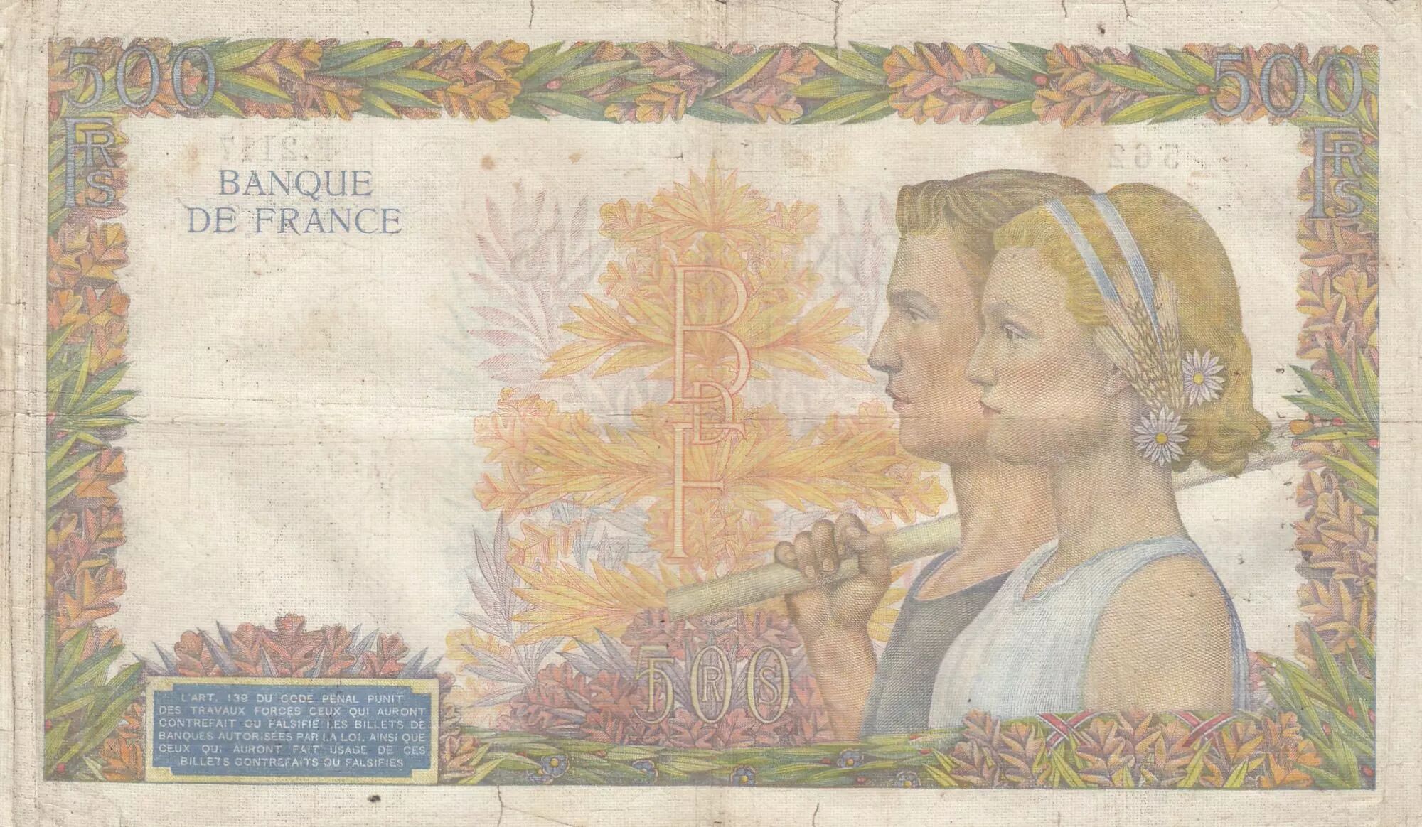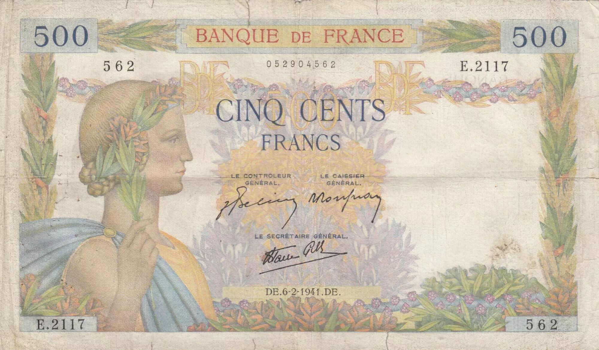 Billet France 500 francs - La Paix - 06-02-1941 - Série E.2117